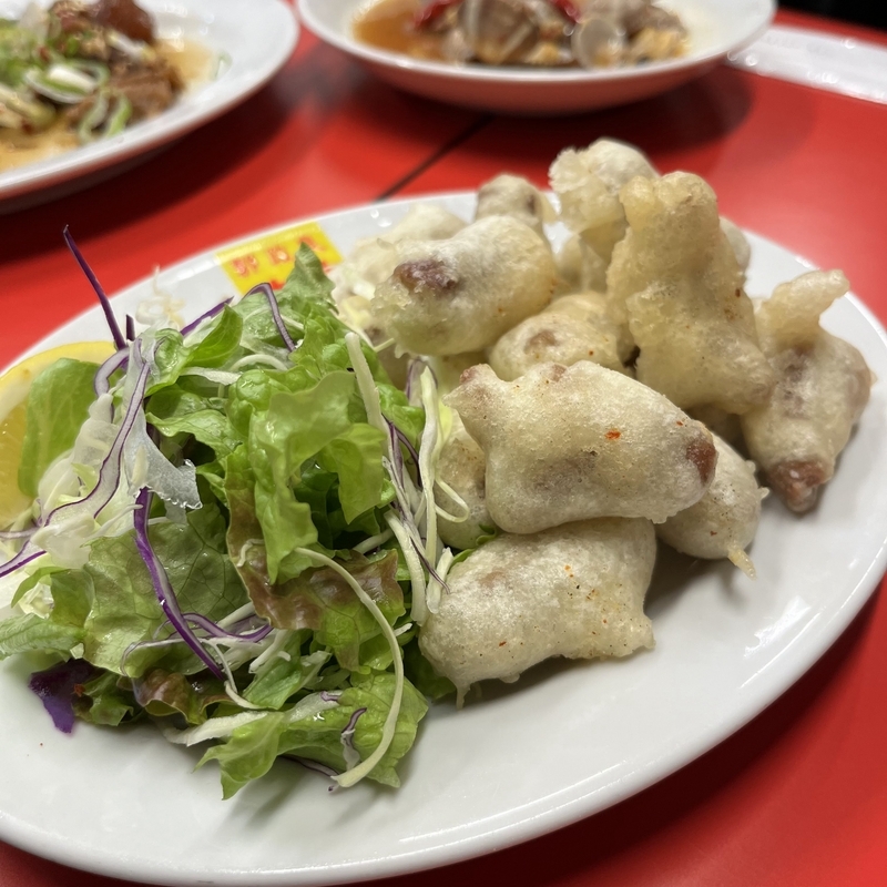 この蚕みたいなのなんだ?ホルモン唐揚げかな?
