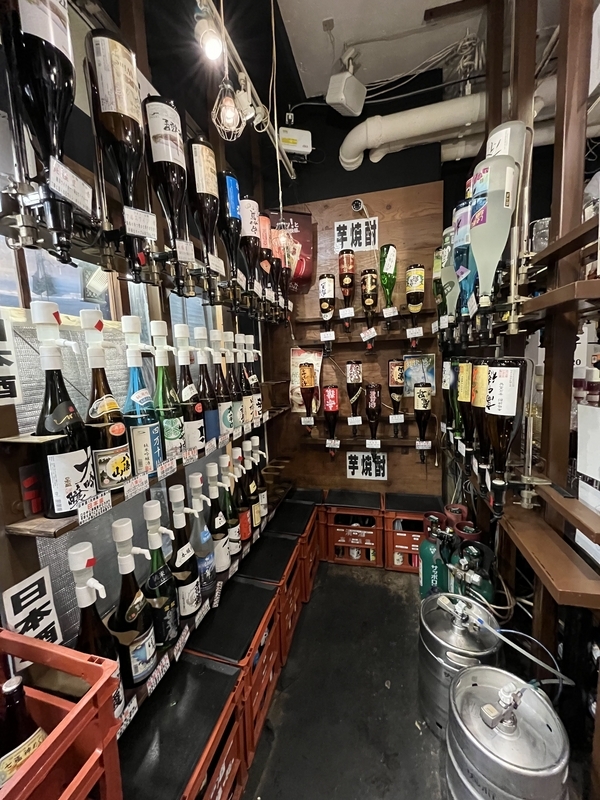 全部セルフなんだけどビールサーバーやサワーの素やウイスキーやらの裏にこれら大量の一升瓶!